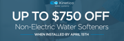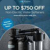 - $750 OFF a Non-Electric Water Softener only valid when install completed by April 15th.